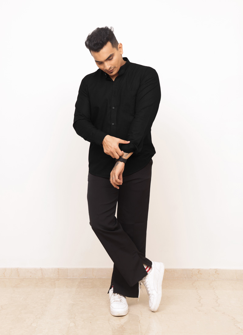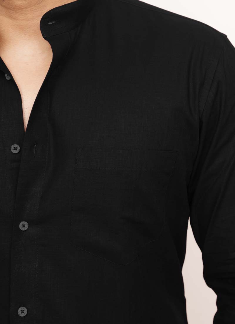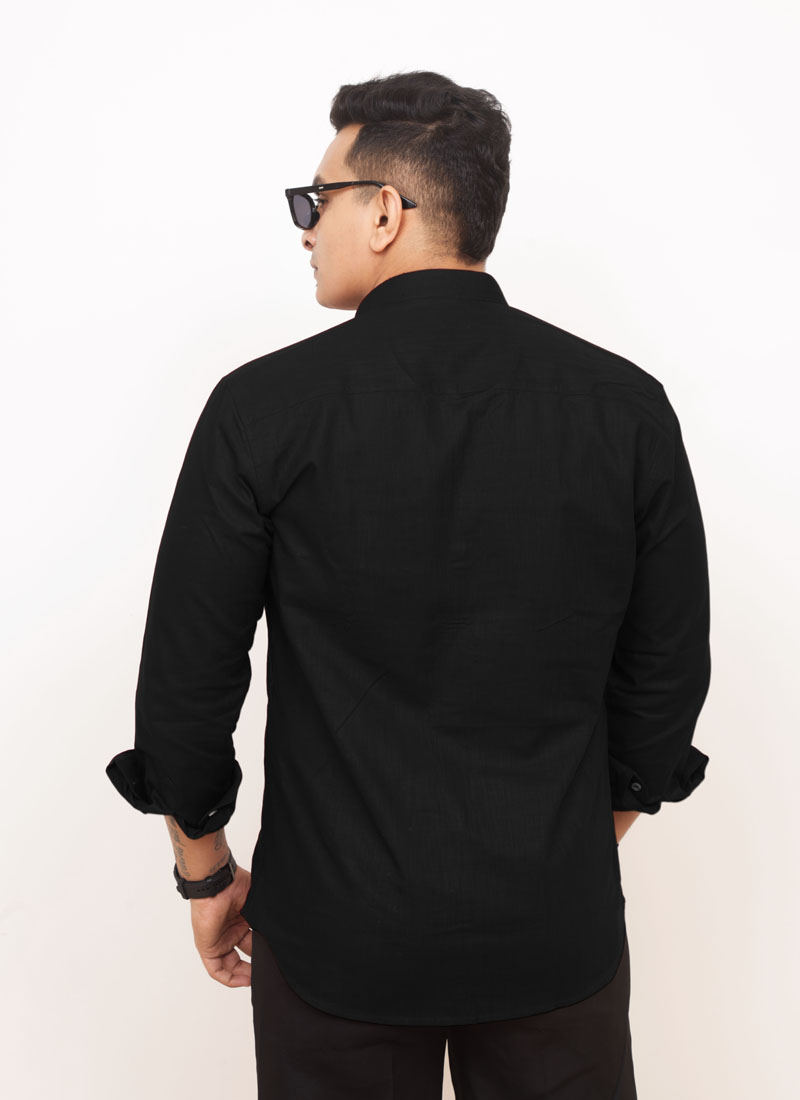 Black Linen Shirt with Patch Pocket