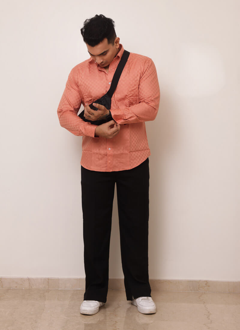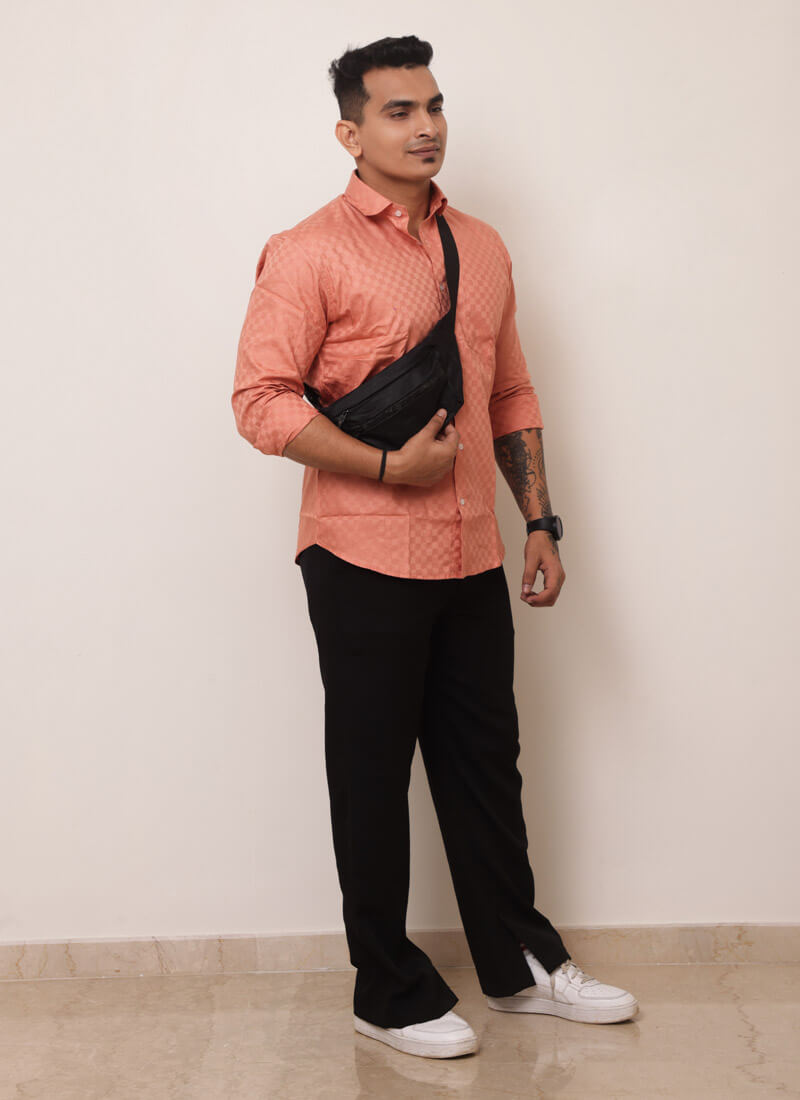 Be the first to review “Checkered Self- Textured Shirt (Coral)”
