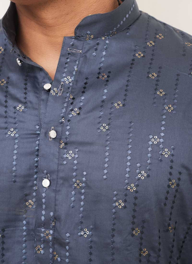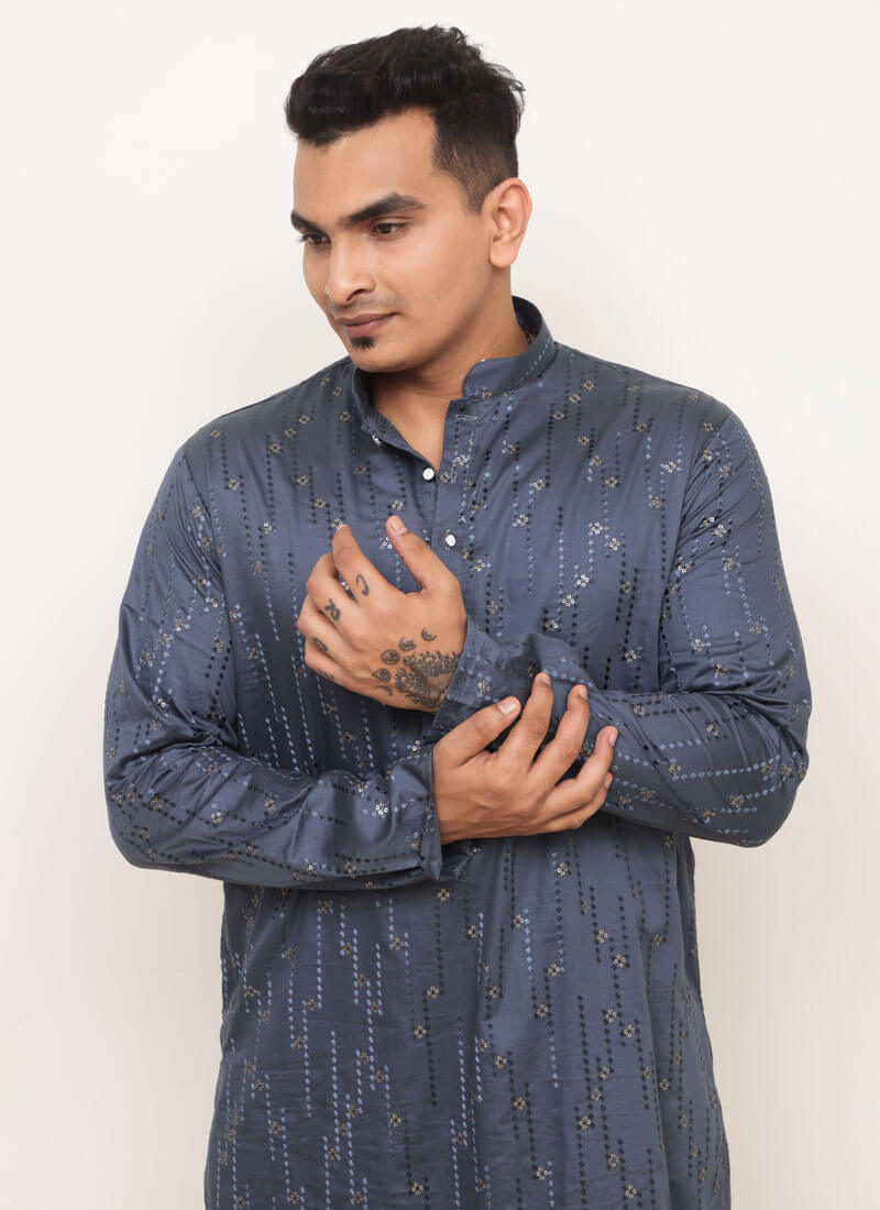 Elevate your wardrobe with this rich, reddish-mauve Men’s Embroidered Shirt. Crafted from a smooth, satin-like fabric, this shirt features intricate floral and geometric embroidery in gold and mauve thread, creating a refined and sophisticated design. The mandarin collar adds a modern, sleek touch, making it perfect for semi-formal and festive occasions.