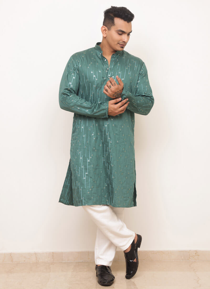 Elevate your wardrobe with this rich, reddish-mauve Men’s Embroidered Shirt. Crafted from a smooth, satin-like fabric, this shirt features intricate floral and geometric embroidery in gold and mauve thread, creating a refined and sophisticated design. The mandarin collar adds a modern, sleek touch, making it perfect for semi-formal and festive occasions.