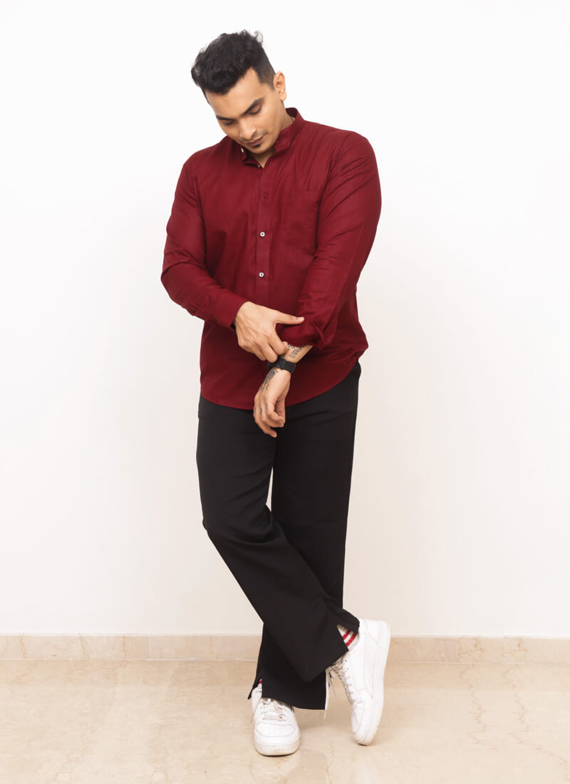 Upgrade your style game with Rushe’s latest collection of men’s shirts, crafted for the perfect balance of sharp and casual. Featuring a stand collar and patch pocket, this full-sleeve Slim-fit shirt is a versatile wardrobe essential that delivers effortless style and timeless appeal.