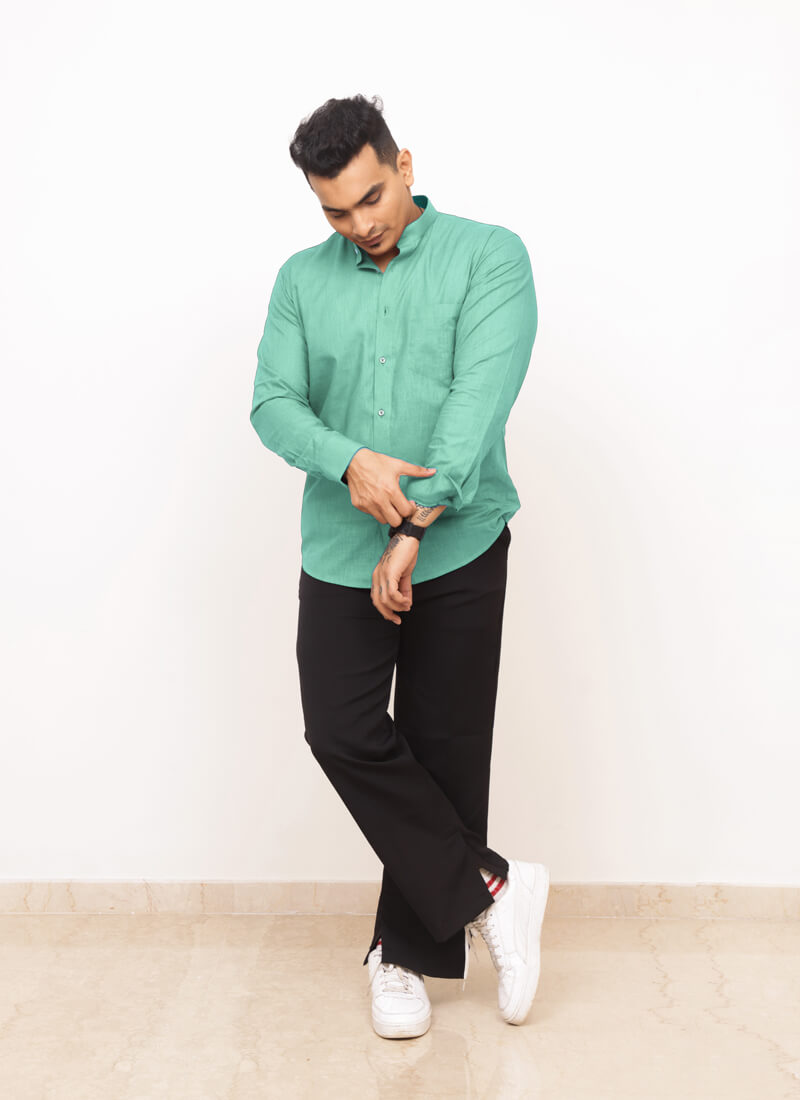 Upgrade your style game with Rushe’s latest collection of men’s shirts, crafted for the perfect balance of sharp and casual. Featuring a stand collar and patch pocket, this full-sleeve Slim-fit shirt is a versatile wardrobe essential that delivers effortless style and timeless appeal.