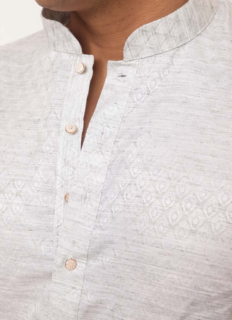 Steel Grey Jacquard Embossed Cotton Men’s Kurta