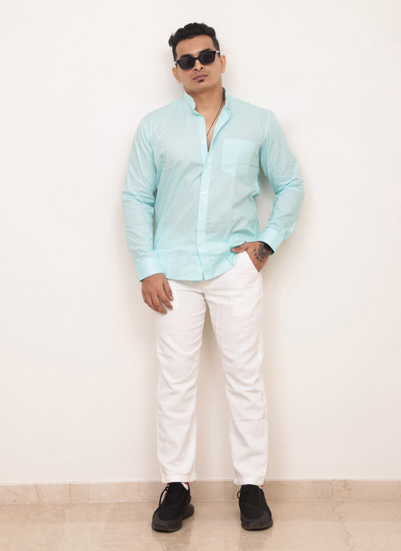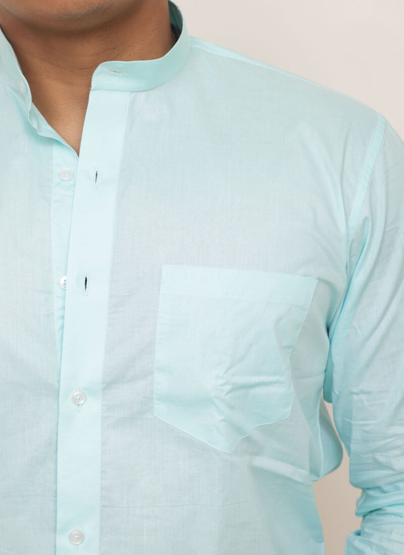 Crafted from soft cotton, this pastel shirt blends comfort with elegance—perfect for work, brunch, or weekend style. Designed with a stand collar and patch pocket, it adds a refined yet relaxed touch to your wardrobe