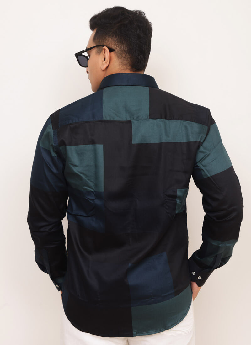 Upgrade your wardrobe with this uniquely designed colour block shirt, blending black, brown, olive green, blue shades for a modern, eye-catching look. Tailored for comfort and versatility, this shirt is ideal for both casual outings and smart-casual occasions.